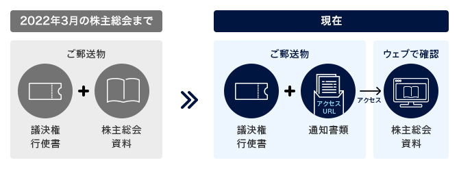- 株主総会資料は、原則として「印刷物のご郵送」から「ウェブでのご確認」に変わっています。