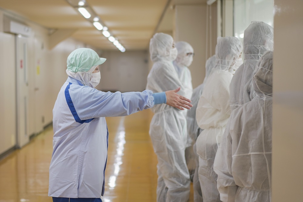 工場の包装エリアを熱心にご見学されています。
