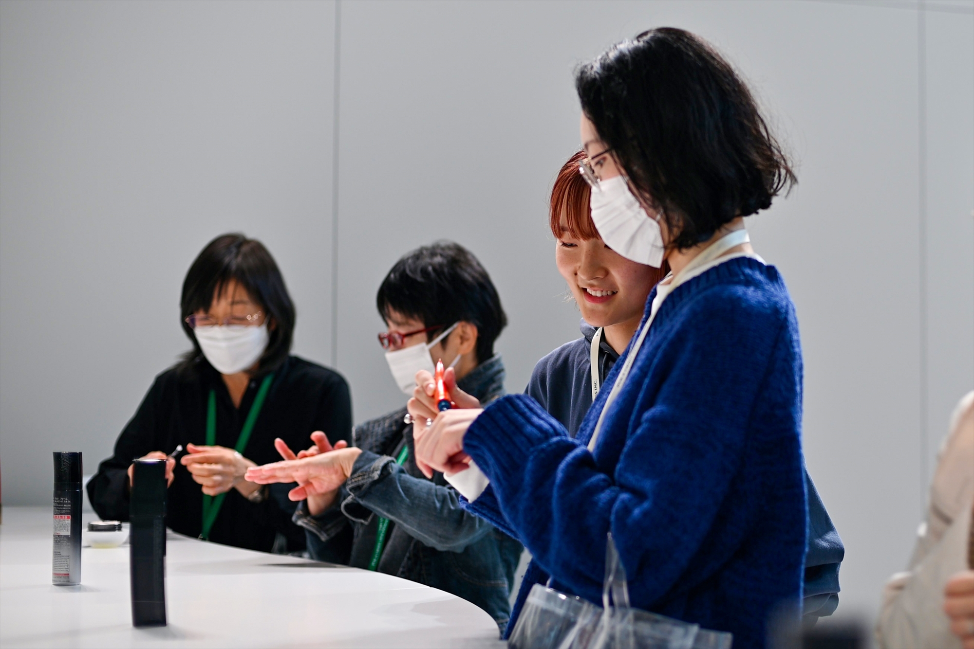 独自の生産システムや”匠”と呼ばれる熟練した従業員の技術をご見学いただいた後、肌分析センターでは、お肌の分析が行われる模様を間近にご覧いただき、ご参加者さまから多くのご質問をいただきました。「クリーム作り体験」では、乳化の工程を研究員と共にご体験いただき、当社グループの技術とこだわりを凝縮して作られた様々なクリームをお試しいただきました。