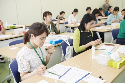 当社の研究開発体制をご紹介した後、研究員がエイジング、ホワイトニング、健康食品等の研究成果をお話しし、ご参加者さまから多くのご質問を頂戴しました。「オリジナル香水づくり」は大変好評で、皆さまとても真剣に取り組んでいらっしゃる姿が印象的でした。