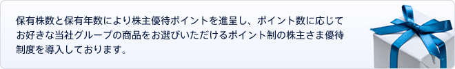 - 保有株式数と保有期間に応じて「株主優待ポイント」を進呈いたします。